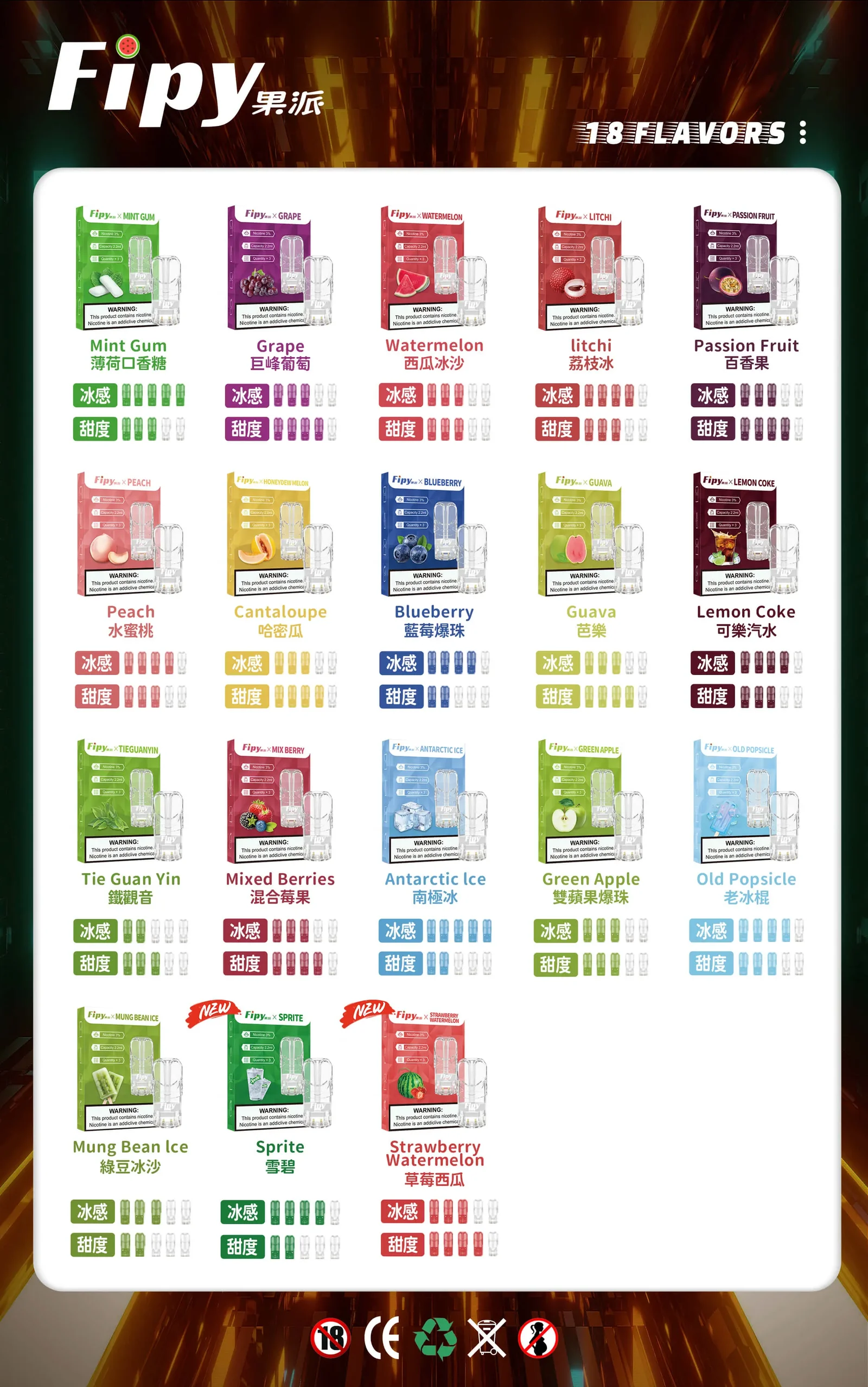 這款 fipy 果派一代霧化煙彈在口味方面可謂是下足了功夫,擁有多種誘人的口味可供選擇。有清新甜蜜的水果口味,像是多汁的蜜桃味,每一口抽吸都仿佛咬下一口熟透了的水蜜桃,那濃郁的蜜桃果香在口腔中肆意綻放,清甜的滋味讓人回味無窮;還有酸爽清新的檸檬味,猶如在炎炎夏日裡喝上了一口冰涼的檸檬汽水,檸檬的清新香氣伴隨著適度的酸味,瞬間讓你感覺神清氣爽,抽上一口,仿佛置身於檸檬果園之中呢;更有那獨具特色的複合水果味,巧妙地融合了草莓、菠蘿、葡萄等多種水果的香氣,創造出了一種全新且豐富的味覺世界,每一次抽吸都是一次探索新奇味道的美妙旅程,能充分滿足你對不同水果香調的喜好與追求哦。